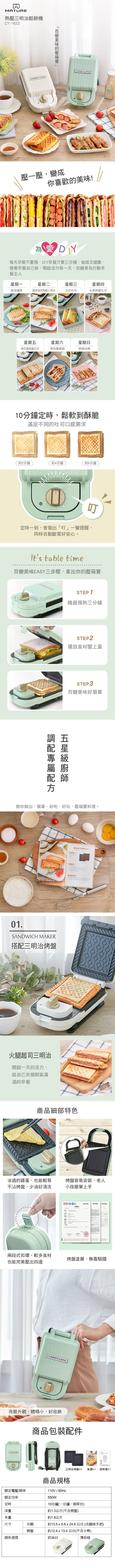 內容物: 【 MATURE 美萃 】熱壓三明治鬆餅機 CY-1622