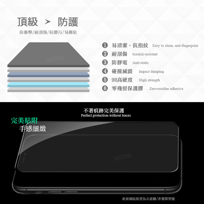 | 商品名稱 | VXTRA 全膠貼合 滿版疏水疏油9H鋼化頂級玻璃膜(黑) |