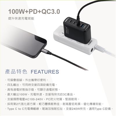.最大輸出100W,充電快速,支援有快充的3C產品