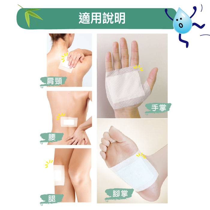 | 注意事項 | (1)僅供外用,不可食用。粉包不可撕開使用,也避免誤撒入眼部及口部。 (2)使用過程中如皮膚表面有傷口或用後感不適,請停止使用。 (3)請勿使用在傷口周圍、皮膚過敏、脆弱或出疹的位置。 (4)請存放於兒童不易接觸及避免放置於陽光直射或高溫的場所。 |