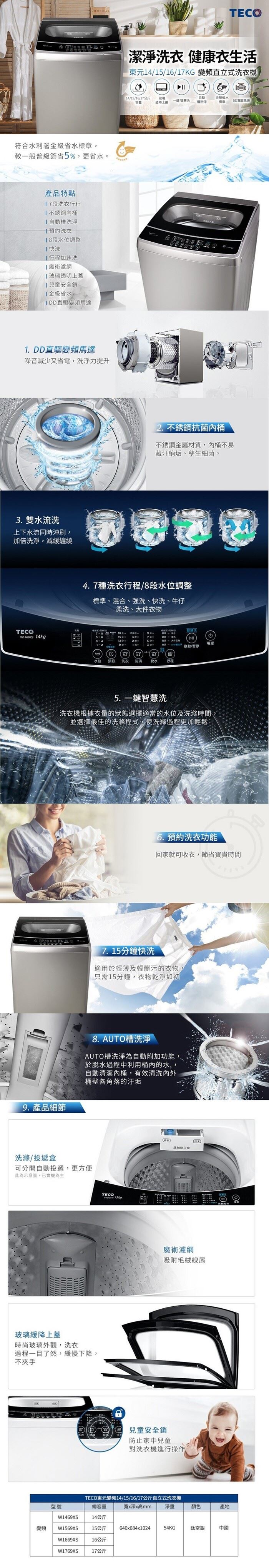 | 商品名稱 | 【TECO 東元】 17kg DD直驅變頻直立式洗衣機(W1769XS) |