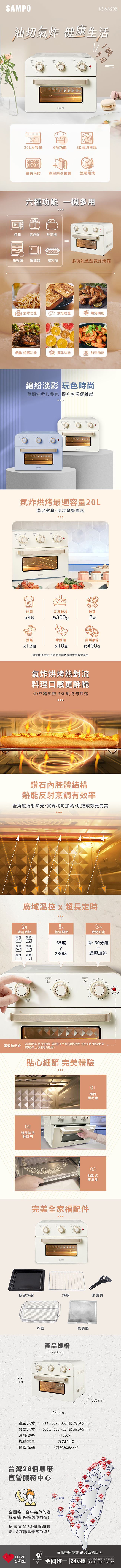 | 商品名稱 | SAMPO聲寶 20L多功能氣炸電烤箱(香草白) KZ-SA20B |