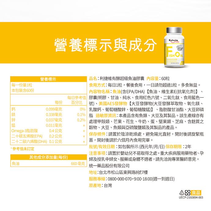 | 商品名稱 | 利捷維有酵超級魚油膠囊 60粒 |