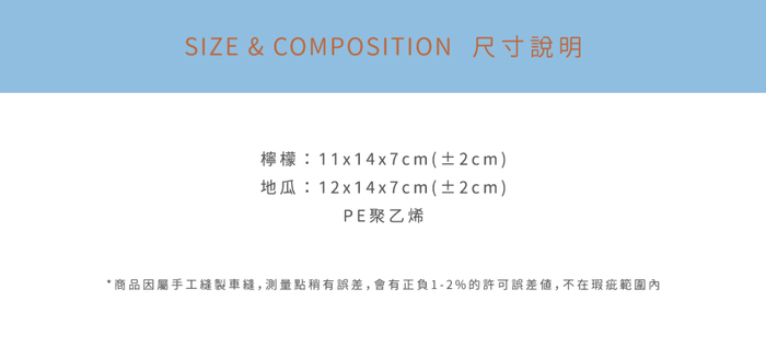 LEMONY 檸檬:11x14x7cm KUMI 地瓜:12x14x7cm |