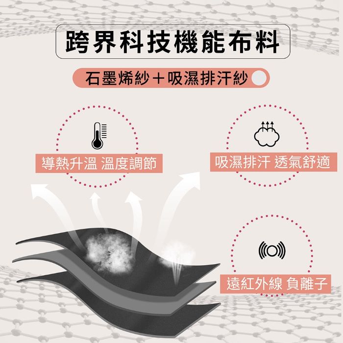 | 商品成分 | 聚酯纖維100%(石墨烯紗60%+吸濕排汗40%) |