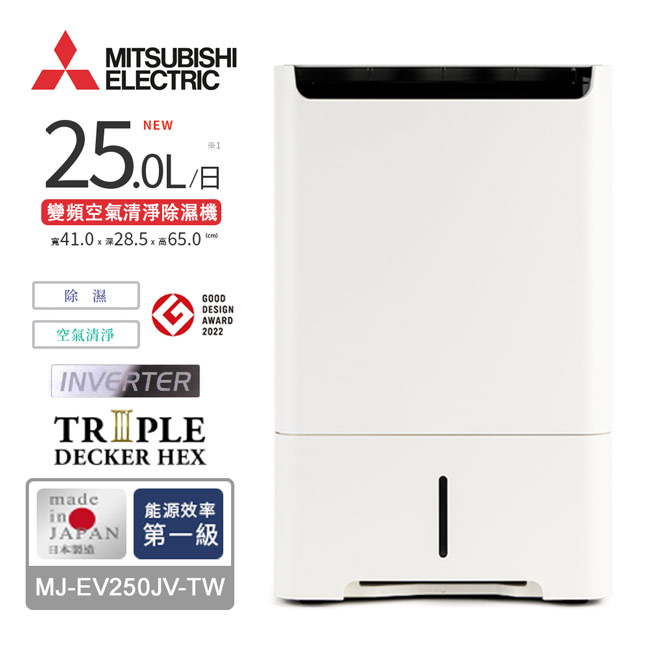 | 商品名稱 | 【MITSUBISHI三菱】25L變頻高效型清淨除濕機 MJ-EV250JV-TW |
