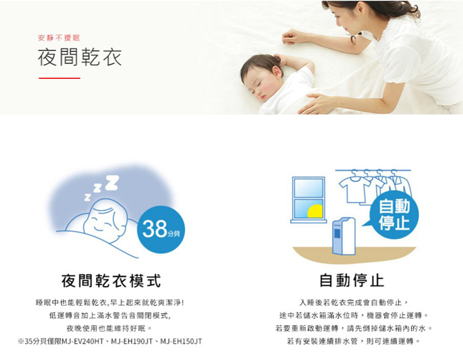 除濕運轉音(強/靜音):42/34dB