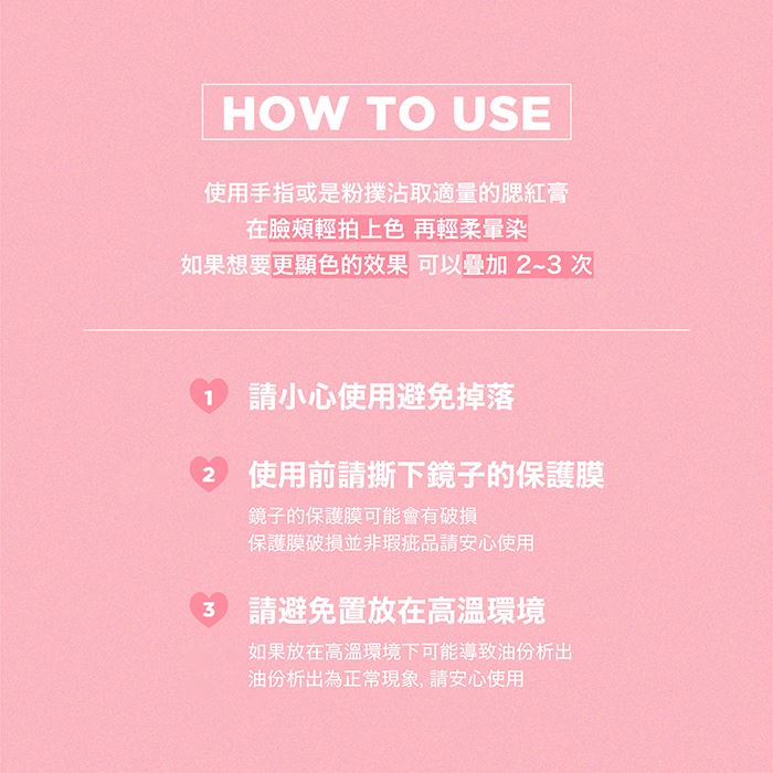 | 使用方法 | 取適量塗抹於臉頰肌膚,透出好氣色 |