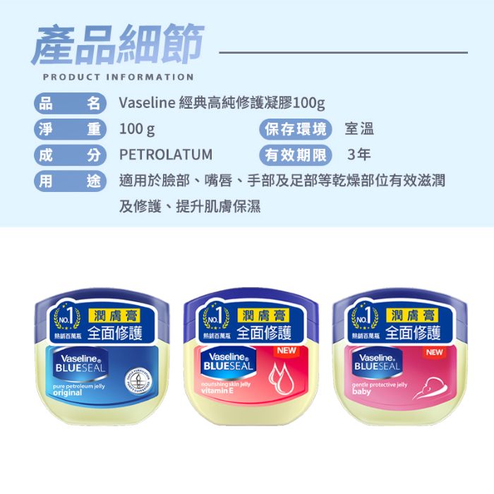 | 商品名稱 | Vaseline 經典高純修護凝膠100g - 嬰兒配方 6入組 |