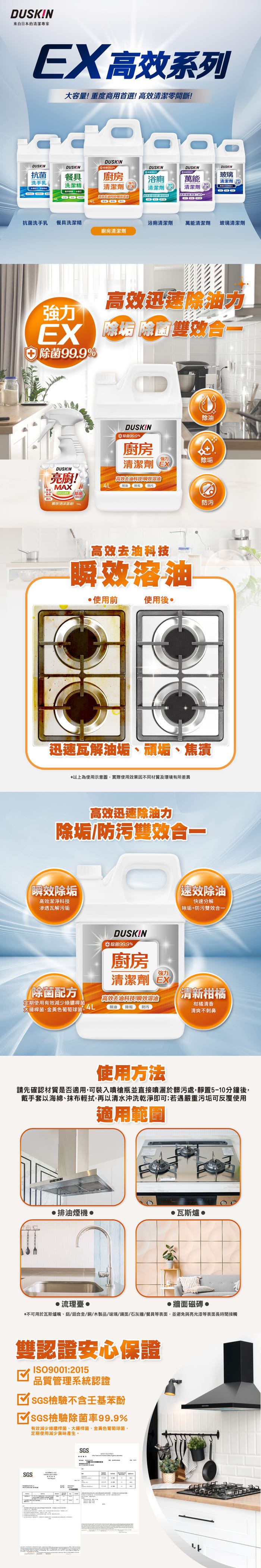 | 商品名稱 | 【超值4入組】DUSKIN 廚房清潔劑4L |