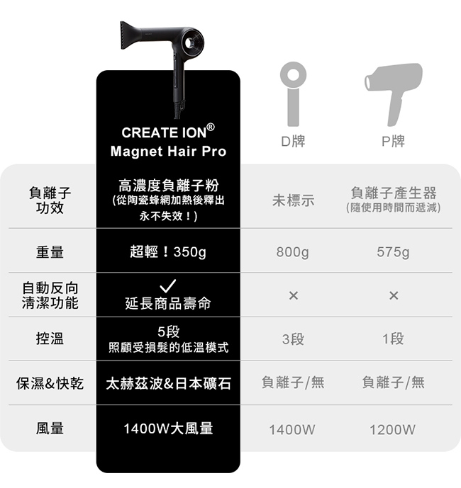 | 商品名稱 | 【MAGNET Hair Pro】日本礦石負離子沙龍吹風機 HCD-G07CBTW |