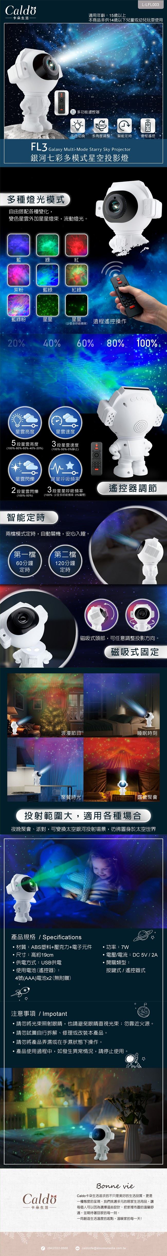 | 商品名稱 | Caldo卡朵生活 銀河七彩多模式星空投影燈FL-3 |