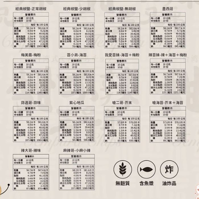 熱門:經典椒鹽-梅粉-海苔-蒜味-麻辣