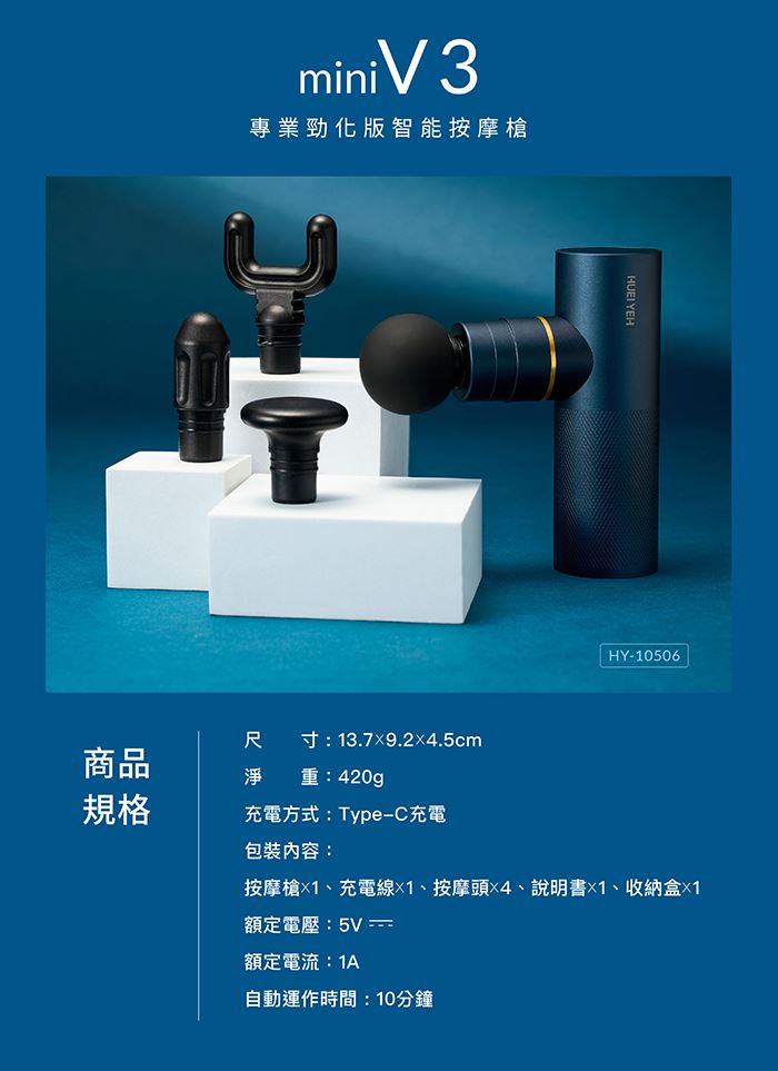 | 【商品名稱或型號】 | 【輝葉】miniV 3專業勁化版智能按摩槍(HY-10506) |