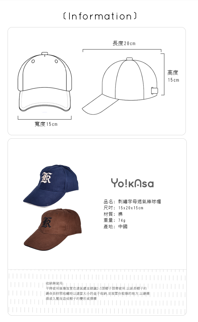 | 【商品名稱】 | (團)【Yo!kAsa】刺繡字母透氣棒球帽 超值五入組(兩色) |