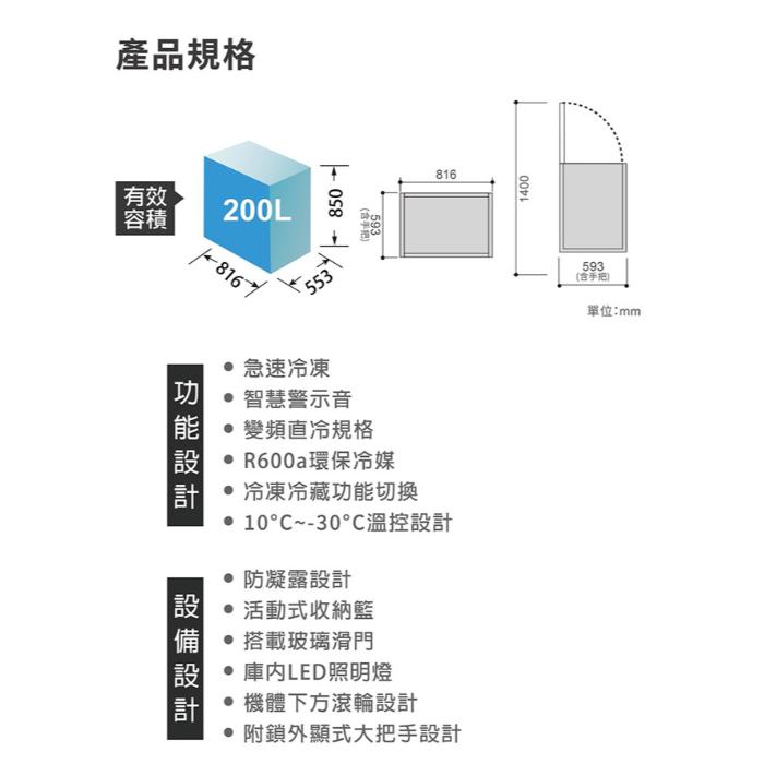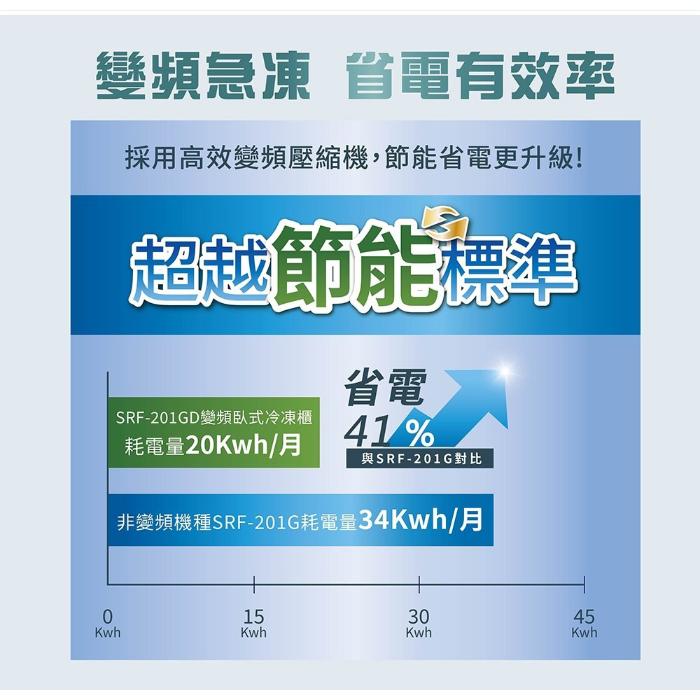 | 商品名稱 | 【SAMPO聲寶】200公升變頻臥式冷凍冷藏櫃 SRF-201GD✔基本安裝✔舊機回收 |