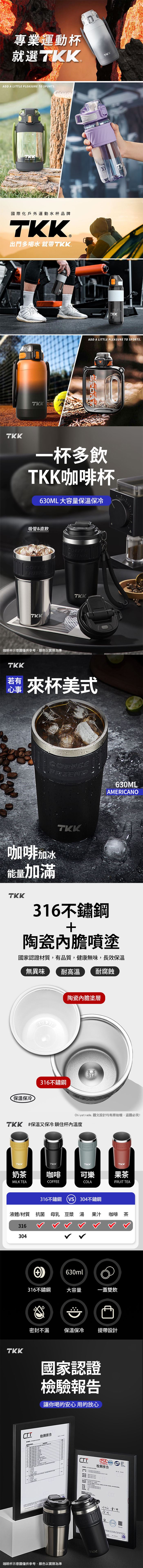 | 商品名稱 | 【TKK】洛奇系列 316不鏽鋼x陶瓷噴塗 咖啡杯 保溫杯 隨身杯 630ML(直飲+吸管)-任選色 |