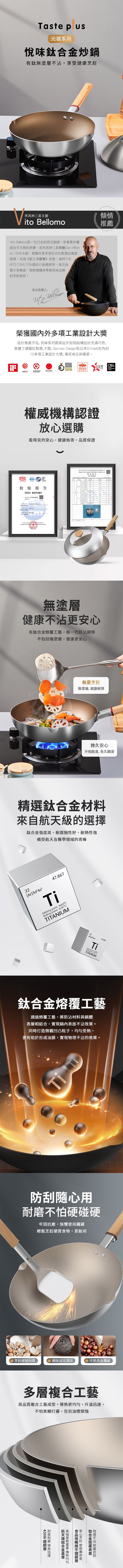 | 商品名稱 | 專案贈日本極3刀組【Taste Plus】悅味元器 鈦合金x430不鏽鋼炒鍋 無塗層不沾炒鍋 32cm IH全對應設計(贈鍋蓋+蒸盤+不鏽鋼鏟) |