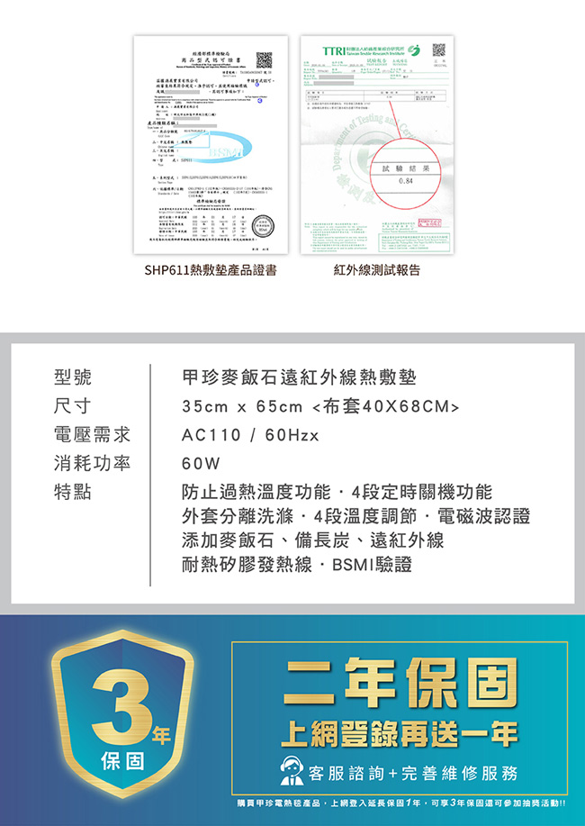 | 商品名稱 | 【韓國甲珍】麥飯石遠紅外線熱敷墊(加熱升級版) SHP611 PLUS |