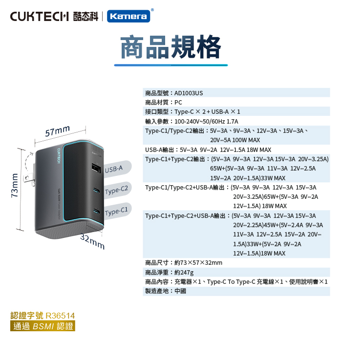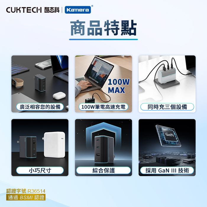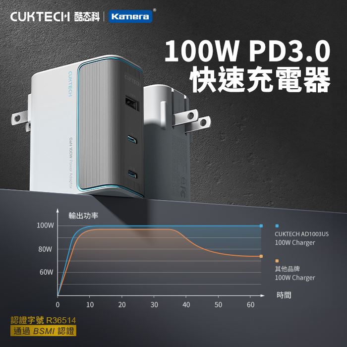 | 商品名稱 | CUKTECH 酷態科 AD1003US 10號 GaN 100W 氮化鎵 充電器套裝 |