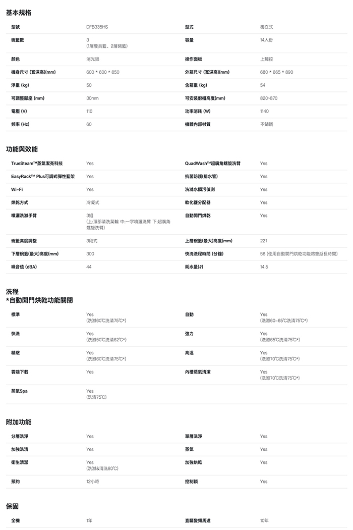 | 商品名稱 | LG 樂金 QuadWash Steam 四方洗蒸氣自動開門洗碗機 DFB335HS |