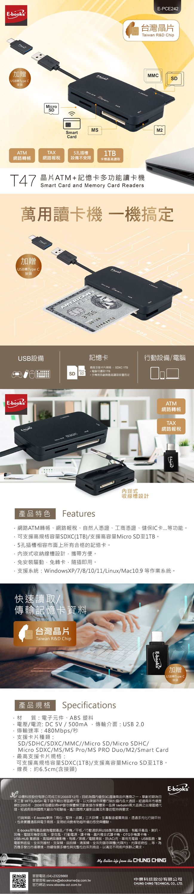 【E-books】台灣晶片ATM&記憶卡多功能讀卡機(T-47)