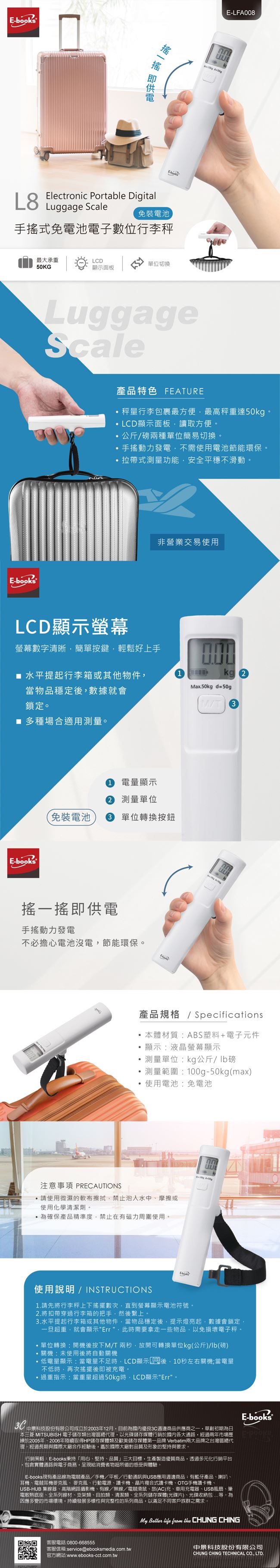 | 【商品名稱或型號】 | 【E-books】手搖式免電池電子數位行李秤(L-8) |