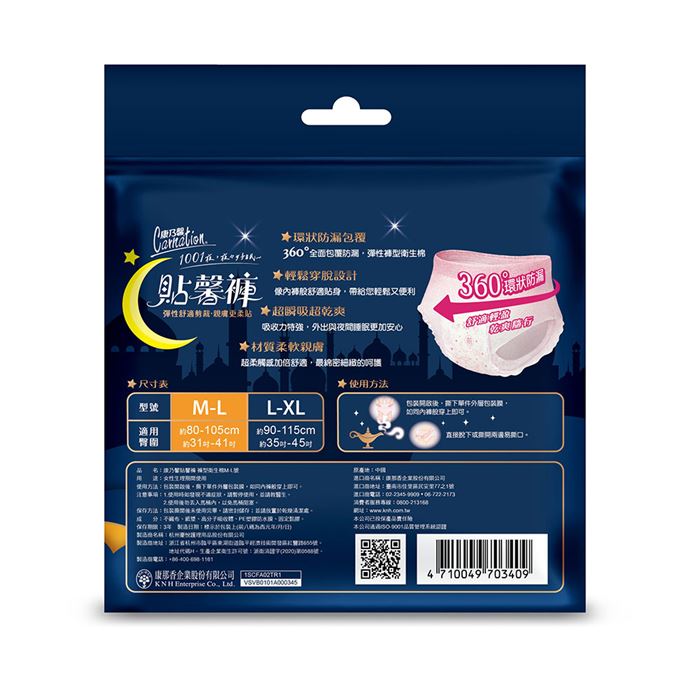 | 商品名稱 | 【康乃馨】貼馨褲 褲型衛生棉(M-L號)2片X12包 |