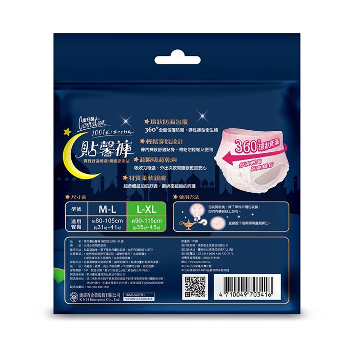 | 商品名稱 | 【康乃馨】貼馨褲 褲型衛生棉(L-XL號)2片X12包 |