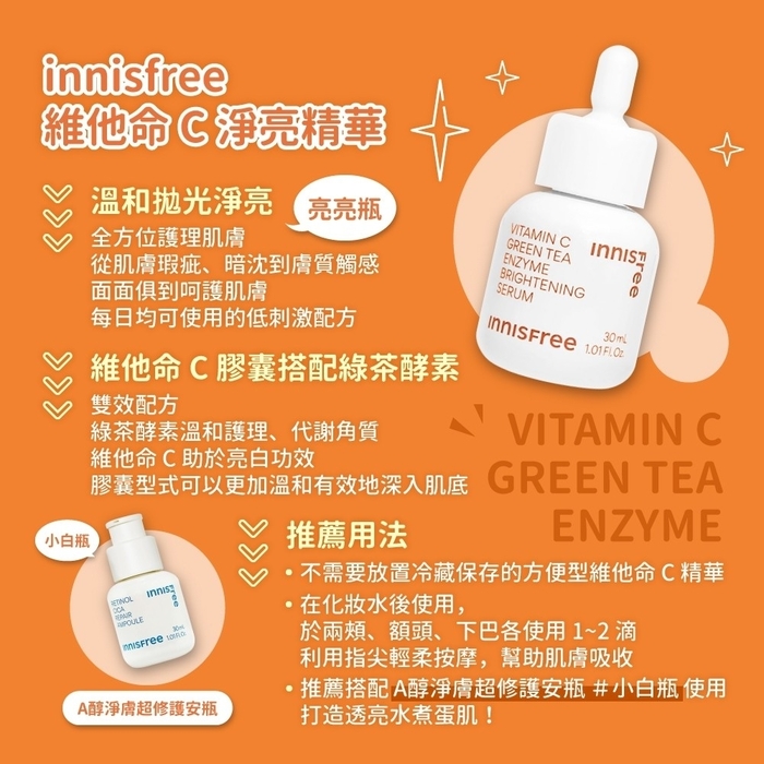 | 商品名稱/包裝內容規格 | INNISFREE 維他命C淨亮精華30ml |