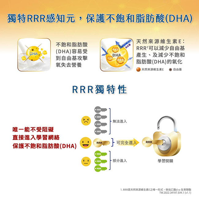| 內容物(完整成份/食品添加物) | 脫脂牛奶、乳糖、蔗糖、高油酸葵花籽油、大豆油、椰子油、果寡醣(FOS)、碳酸鈣、檸檬酸鉀、2’-岩藻糖基乳糖(2’-FL)、大豆卵磷脂、維生素C、高油酸紅花籽油、寇氏隱甲藻油(DHA來源)、氯化膽生僉、香草香料、氯化鈉、氫氧化鉀、麥芽糊精、牛磺酸、硫酸亞鐵、重酒石酸膽生僉、高山被孢黴發酵產物(AA來源)、比菲德氏菌(Bifidobacterium animalis ssp. lactis)、L-抗壞血酸棕櫚酸酯(抗氧化劑)、硫酸鋅、混合濃縮生育醇(抗氧化劑)、5’-胞核苷單磷酸鹽、菸鹼醯胺、5’-尿核苷單磷酸鹽、乙酸d-α-生育醇酯(維生素E)#、本多酸鈣、葵花籽油、5’-腺核苷單磷酸鹽、5’-鳥嘌呤核苷單磷酸鹽、氯化鈣、磷酸鈣、氯化鎂、維生素A棕櫚酸酯、硫酸銅、維生素B1、維生素B6、維生素B2、葉黃素、硫酸錳、葉酸、β-胡蘿蔔素、維生素K1、硒酸鈉、生物素、維生素D3、維生素B12、碘化鉀 #天然維生素E來源 |