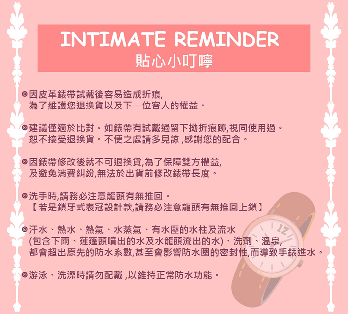 | 【內容物/數量】 | 手錶*1 , 錶盒*1 , 項鍊*1, 手環*1 |
