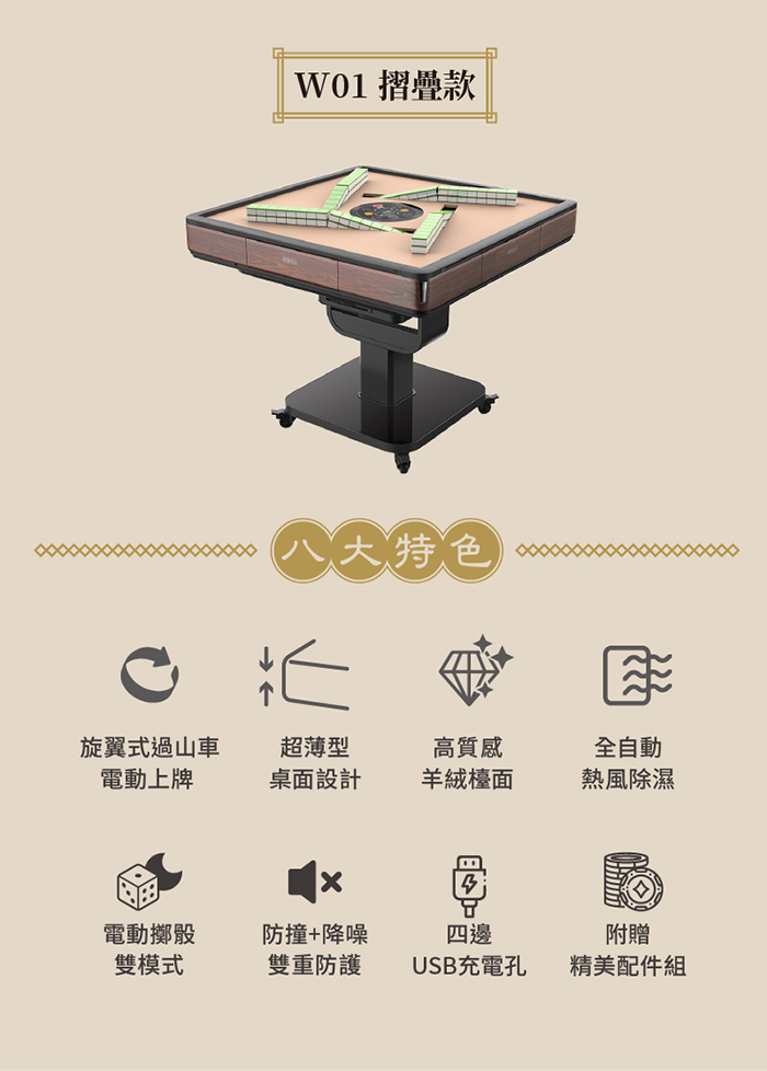 | 【內容物】 | 電動麻將桌x1+精美配件組x1 (不含麻將桌面蓋板) |