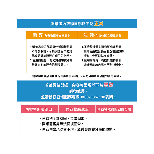 | 內容物(完整成份/食品添加物) | 水.酪蛋白鈉.麥芽糊精(含難消化性麥芽糊精).菜籽油.高油酸葵花籽油.果糖.麥芽糖醇(甜味劑).黃豆纖維.大豆分離蛋白.果寡醣.酪蛋白鈣.大豆卵磷脂.氯化鉀.檸檬酸鈉.香料.肌醇.氯化鎂.檸檬酸鈣.碳酸鈣.氫氧化鉀.磷酸鎂.氯化膽生僉.磷酸氫二鉀.維生素C.鹿角菜膠.葡萄糖.牛磺酸.L-肉酸.檸檬酸鉀.硫酸亞鐵.硫酸鋅.檸檬酸.菸鹼醯胺.本多酸鈣.硫酸錳.硫酸銅.玉米油.維生素B6.維生素B1.維生素B2.維生素A棕櫚酸酯.維生素E.β-胡蘿蔔素.中鏈三酸甘油酯.葉酸.三氯化鉻.鉬酸鈉.碘化鉀.硒酸鈉.維生素K1.生物素.維生素D3.維生素B12 |