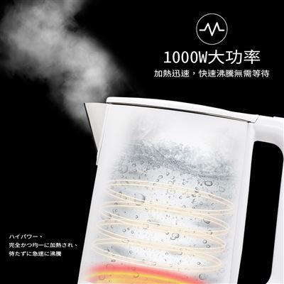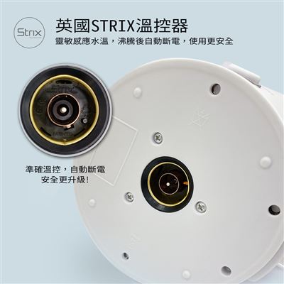※使用提醒:快煮壺水滾後須多等待60~90秒,待蒸氣回流至感應開間後才會自動跳起,水位越少需要等待的時間越久,煮水時請勿低於最低水位線。