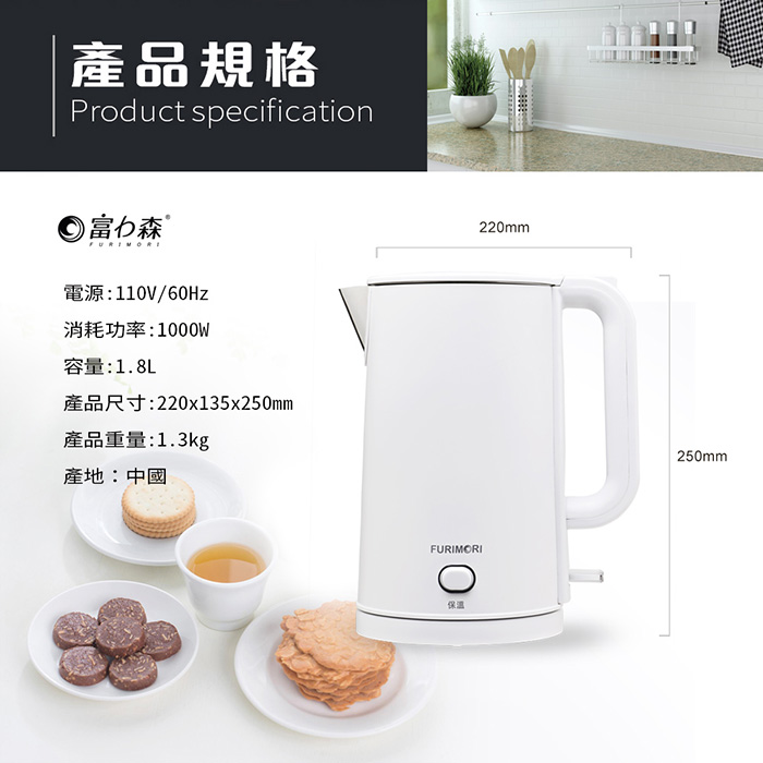 | 商品名稱 | 【4入團購組】《富力森》1.8L保溫隔熱不鏽鋼快煮壺 |