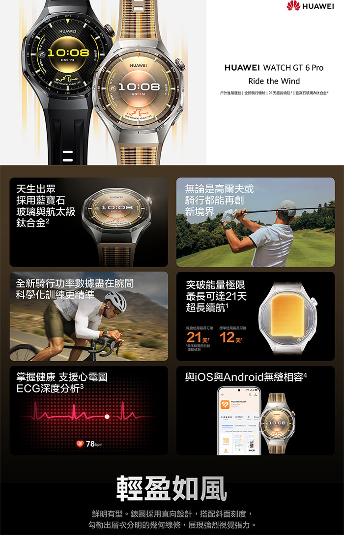 | 商品名稱 | 【HUAWEI 華為】Watch GT6 Pro 46MM智慧手錶 琥珀棕 |