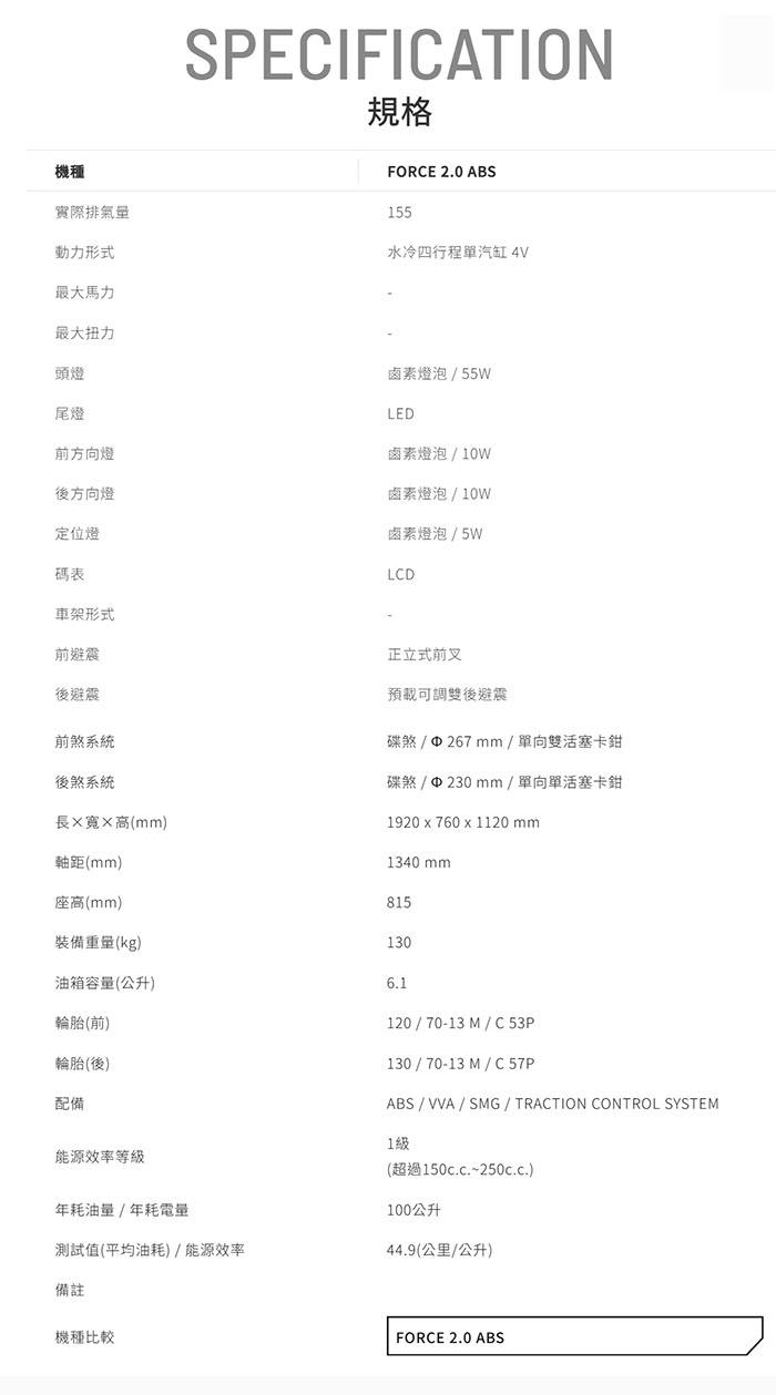FORCE 2.0新色彩ABS+TCS版 |