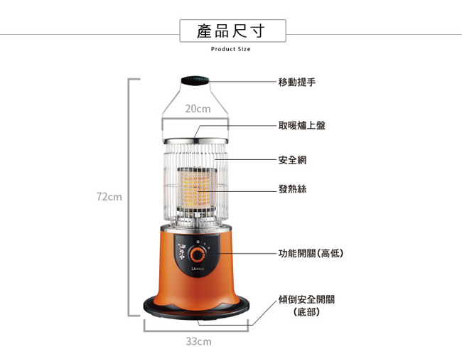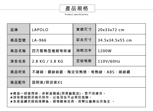 | 商品名稱 | 【LAPOLO藍普諾】360度環繞散熱電暖器 LA-966 |
