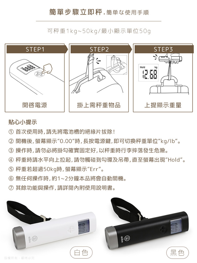 | 【商品名稱/型號】 | 【aibo】日系簡約 數位電子行李秤 - 2色可選 |