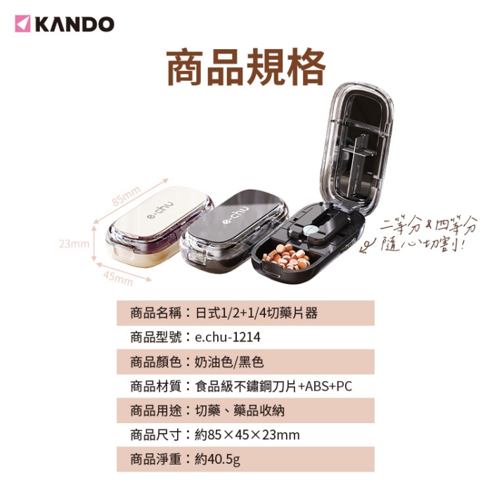 | 商品名稱 | KANDO 日式1/2+1/4切藥片器 |
