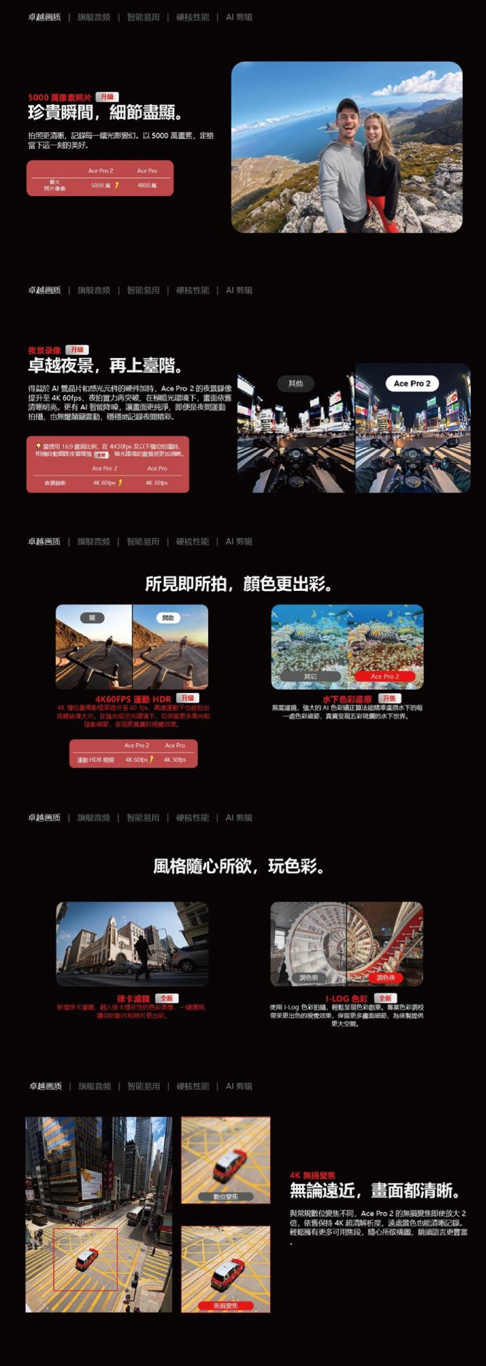 | 【內容物/數量】 | ACE PRO2 雙電池版x1+原廠潛水殼x1+手持浮力棒x1+128GB高速記憶卡x1 |