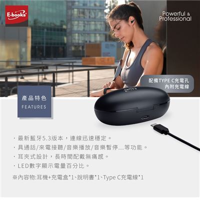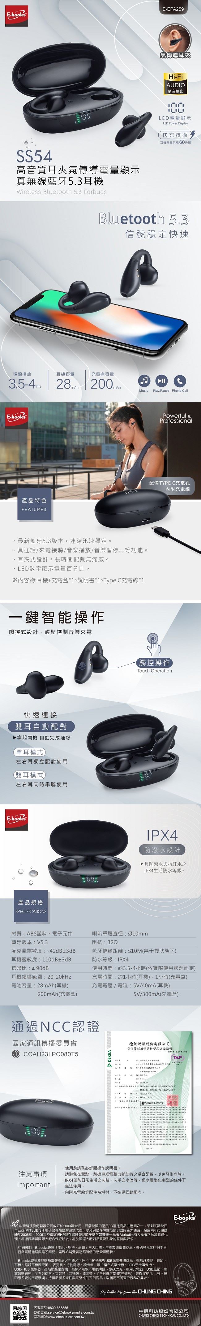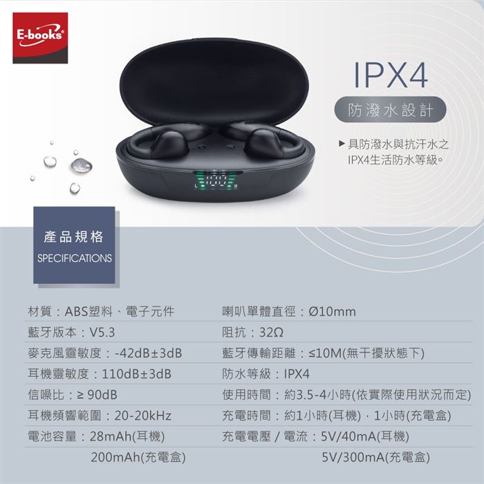 | 商品名稱 | E-books 耳夾式氣傳導真無線藍牙5.3耳機SS-54 |