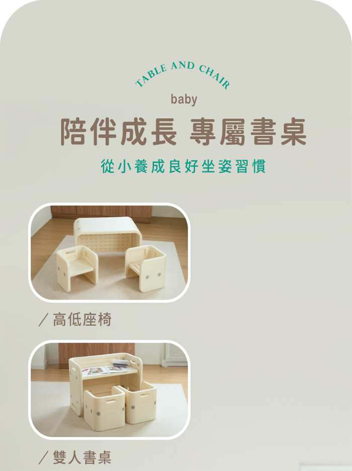| 包裝內容/商品規格 | 椅子尺寸 : 33 x 31 x 31cm 桌子尺寸 : 72 x 41 x 51cm 適用年齡 : 12個月以上 箱數 : 1PC/CTN 淨重 : 7.9kg 毛重 : 8.9kg 外箱尺寸 : 72 x 23 x 52cm |