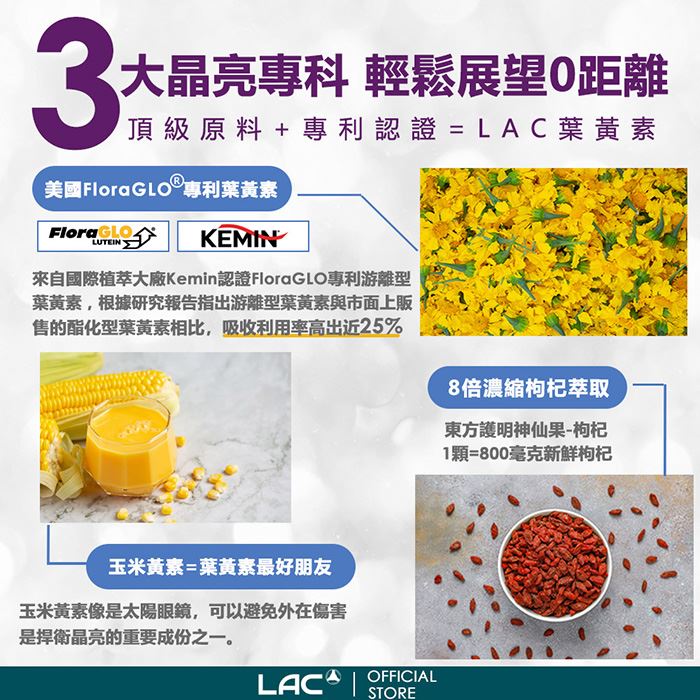 專利FloraGLO葉黃素,1顆=30mg葉黃素