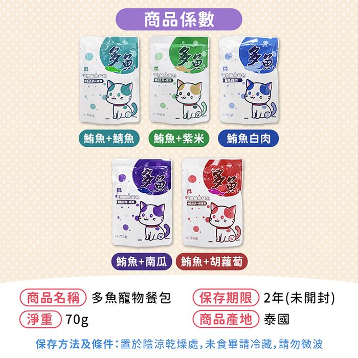 | 商品名稱 | 【米拓】多魚寵物餐包70g (24包/箱)-5款可選 |