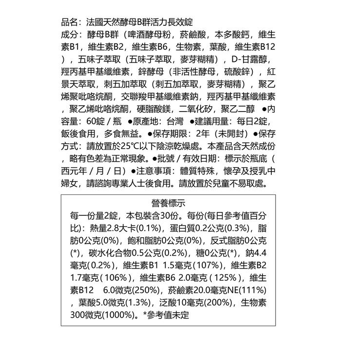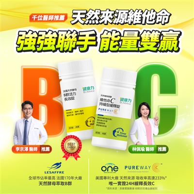 | 包裝內容/商品規格 | B群活力錠60錠1瓶+天然維他命C60錠1瓶+贈魚油10粒 |