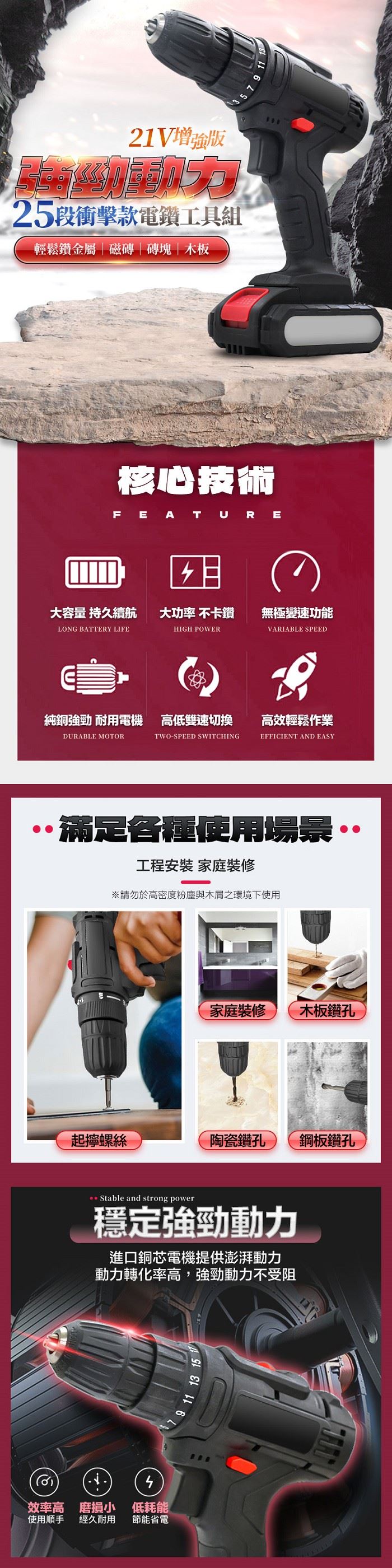 | 【商品名稱/型號】 | 【FJ】專業21V增強版25段衝擊電鑽工具組 |