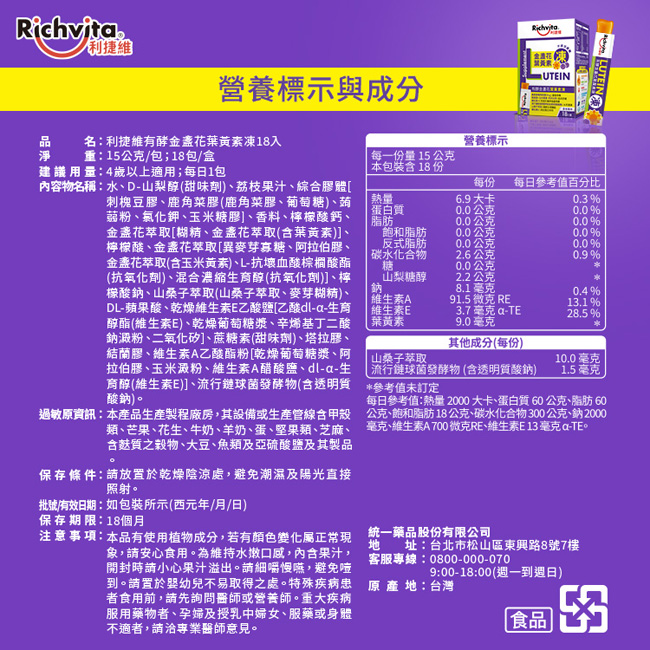 | 商品名稱 | 【買一送一】利捷維金盞花葉黃素凍 18入+贈B群C錠60錠、B+C發泡錠 |