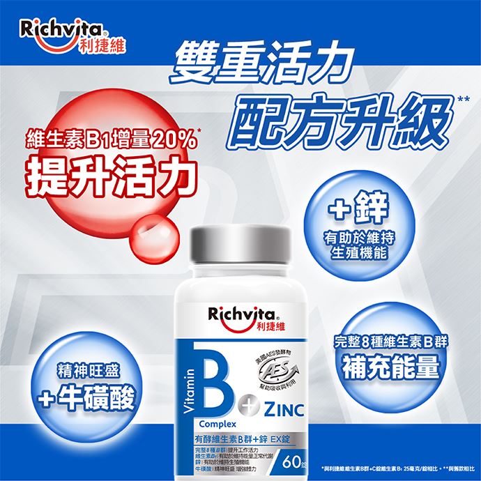 利捷維有酵維生素B群+鋅EX錠 60錠/瓶,共2瓶 贈品-B群C錠60錠/瓶,共1瓶、利捷維有酵維生素B群+C+牛磺酸發泡錠 10錠,1條 |